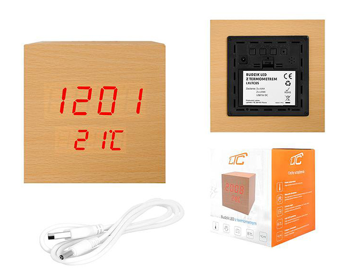 Επιτραπέζιο, ψηφιακό ρολόι με μοντέρνο σχεδιασμό και εμφάνιση ξύλου που θα ταιριάξει σε κάθε δωμάτιο του σπιτιού σας. Διαθέτει ενδείξεις ώρας, ημερομηνίας και θερμοκρασίας, ενώ, υποστηρίζει και λειτουργία ξυπνητήρι.