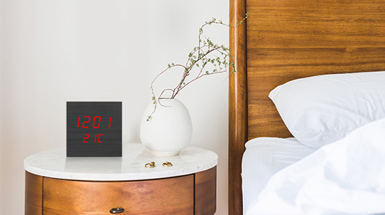 Επιτραπέζιο, ψηφιακό ρολόι με μοντέρνο σχεδιασμό και εμφάνιση ξύλου που θα ταιριάξει σε κάθε δωμάτιο του σπιτιού σας. Διαθέτει ένδειξη θερμοκρασίας και λειτουργία ξυπνητήρι.
