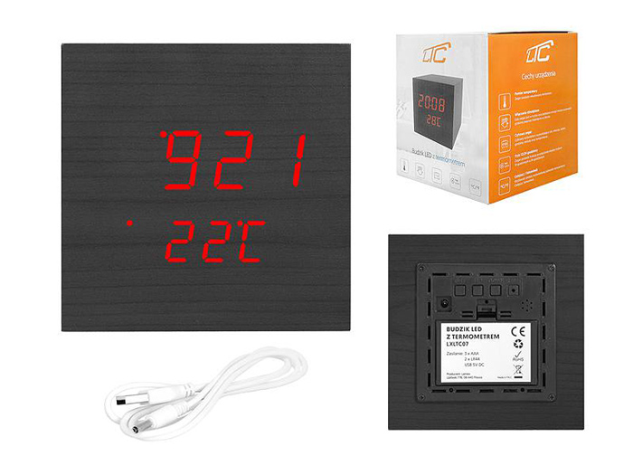 LTC ψηφιακό ρολόι LXLTC07 με ξυπνητήρι & θερμόμετρο, επιτραπέζιο, μαύρο