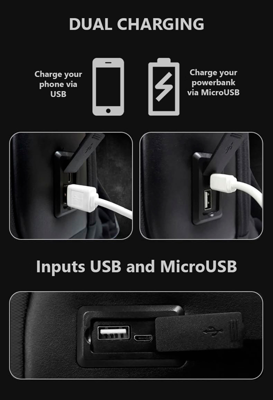 -ενσωματωμένες θύρες USB & Micro USB, για την φόρτιση των συσκευών σας, διατηρώντας το power bank στη τσάντα