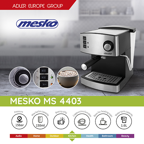 • MESKO ESPRESSO MACHINE 850W 15 BAR ART12