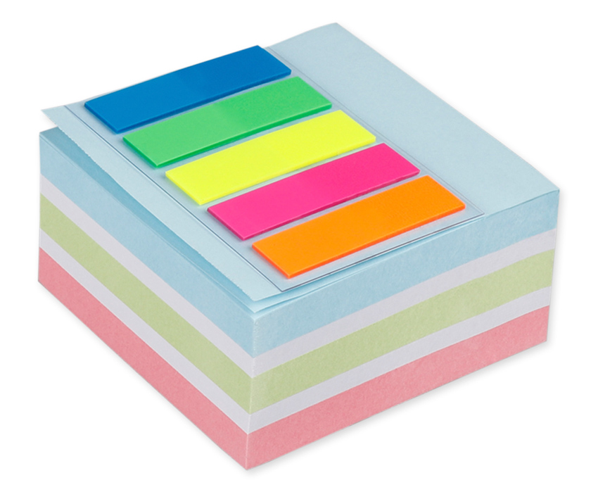 Χρώμα: Χαρτάκια σημειώσεων: 4 χρώματα, Σελιδοδείκτες: 5 χρώματα