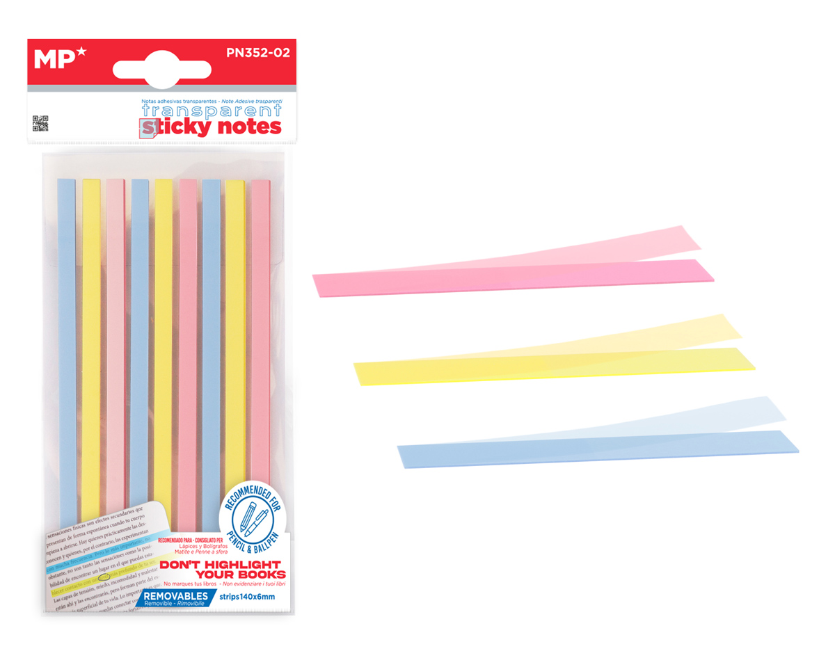 MP αυτοκόλλητα χαρτάκια σημειώσεων PN352-02, διάφανα, 140x6mm, 225τμχ