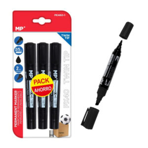 MP ανεξίτηλος μαρκαδόρος PE460-1, με 2x μύτες 2/5mm & 2mm, μαύρος, 3τμχ