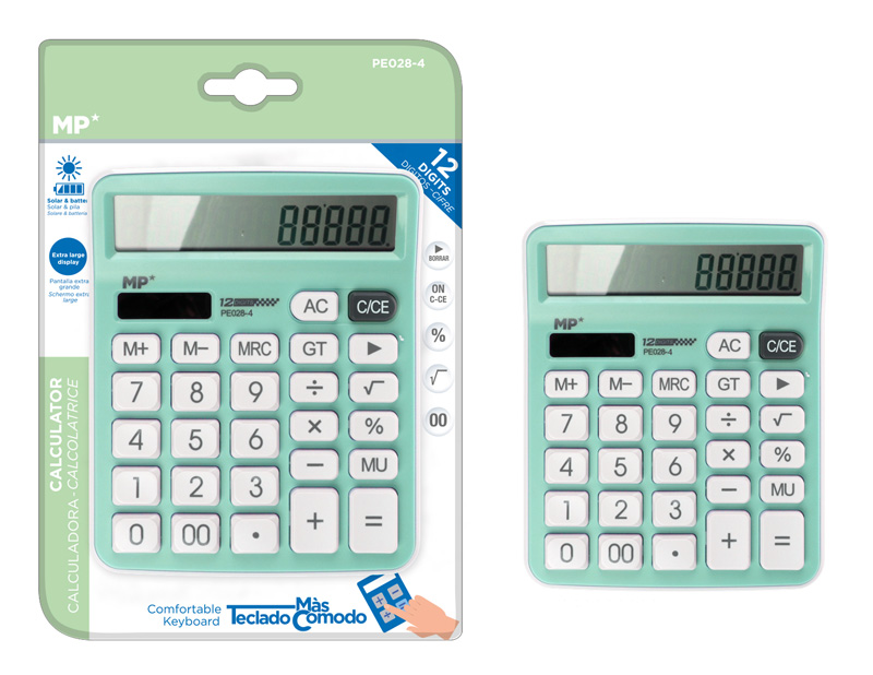 MP αριθμομηχανή PE028, ηλιακό & μπαταρίες, 12 ψηφία, πράσινη