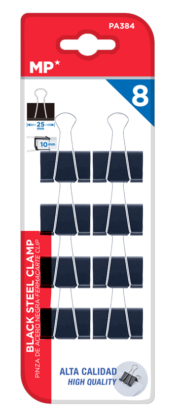 MP μεταλλικό κλιπ συγγράτησης εγγράφων PA384, 25mm, 8τμχ μαύρα