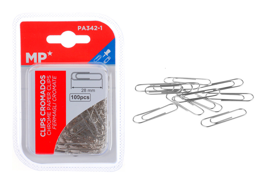 MP μεταλλικοί συνδετήρες PA342-1, 28mm, 100τμχ, ασημί