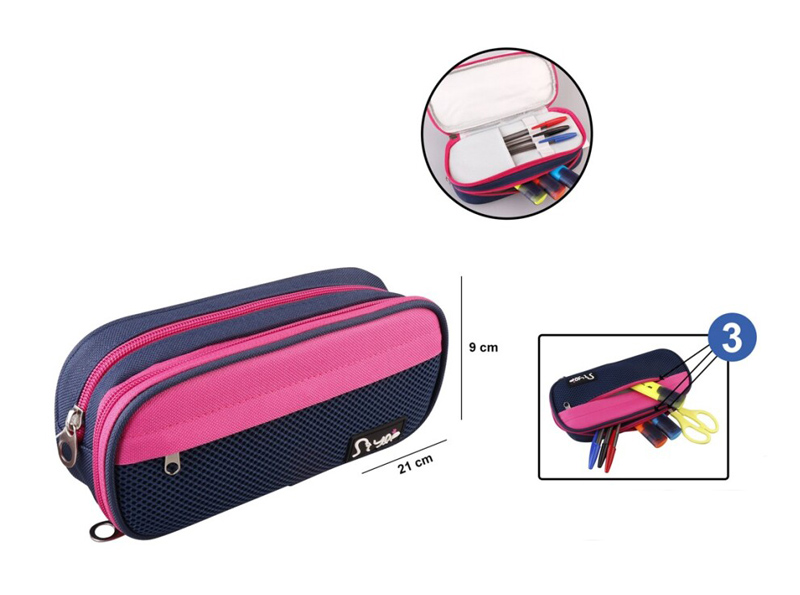 MP υφασμάτινη κασετίνα PA1022-03, 3 θέσεων, μπλε-ροζ