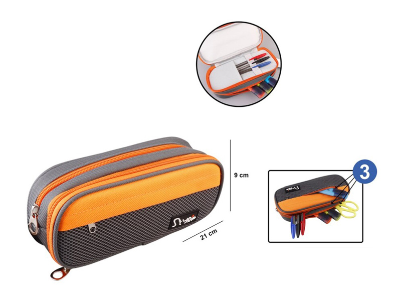 MP υφασμάτινη κασετίνα PA1022-05, 3 θέσεων, γκρι-πορτοκαλί