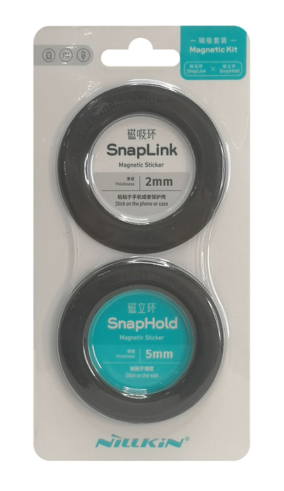 Kit της Nillkin που αποτελείται από μαγνητικό ring SnapLink και ring βάση SnapHold. Το μαγνητικό ring SnapLink σας επιτρέπει να μετατρέψετε οποιοδήποτε smartphone σε μαγνητικό και να το τοποθετείτε μαγνητικά στην βάση.