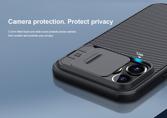 Η σειρά CamShield Pro της Nillkin χαρακτηρίζεται από την ενισχυμένη προστασία που προσφέρει το σκληρό υλικό κατασκευής της με την ανάγλυφη επιφάνεια αλλά και την έξτρα προστασία των καμερών και της ιδιωτικότητας σας, χάρη στο συρόμενο καπάκι της. Η επιφάνεια της είναι αντιολισθητική, έχει ενισχυμένα άκρα, δεν χαράσσεται και δεν κάνει δαχτυλιές.