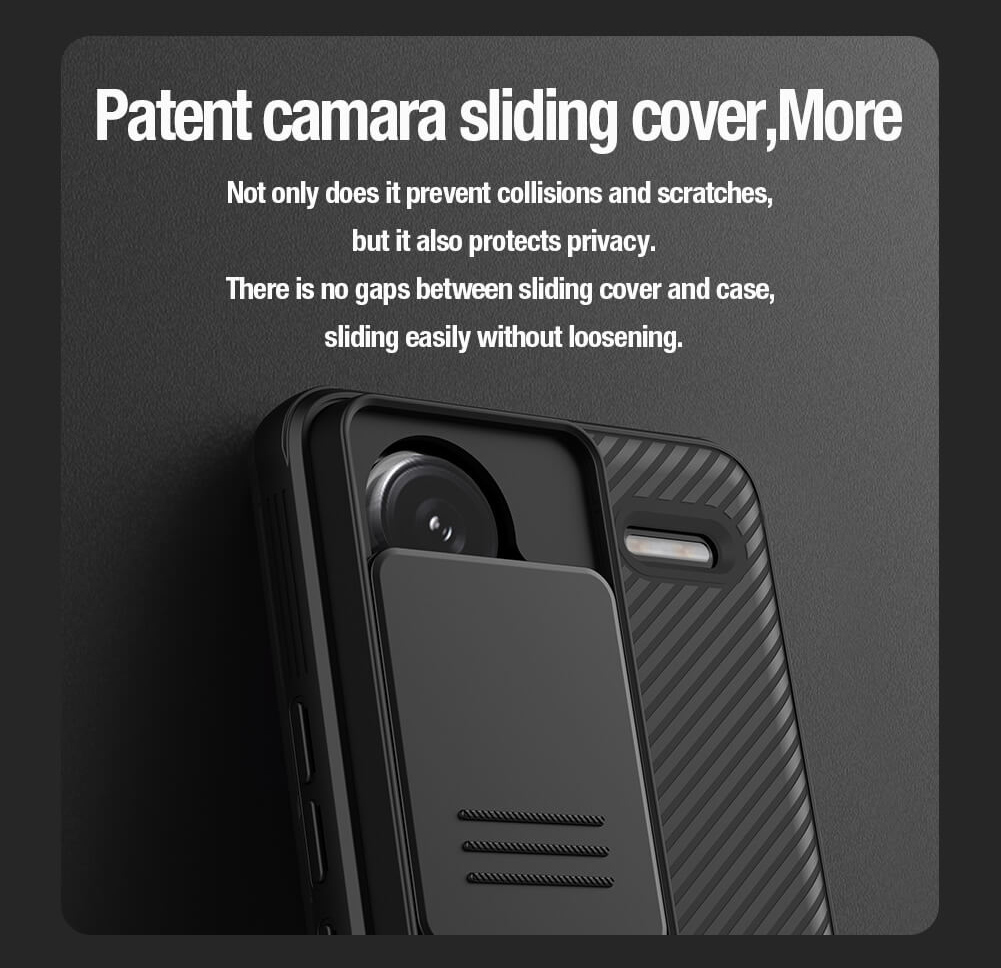 Η θήκη της σειράς CamShield Pro της Nillkin χαρακτηρίζεται από την ενισχυμένη προστασία που προσφέρει, το σκληρό υλικό κατασκευής της με την ανάγλυφη επιφάνεια, αλλά και την έξτρα προστασία των καμερών και της ιδιωτικότητας σας, χάρη στο συρόμενο καπάκι της.