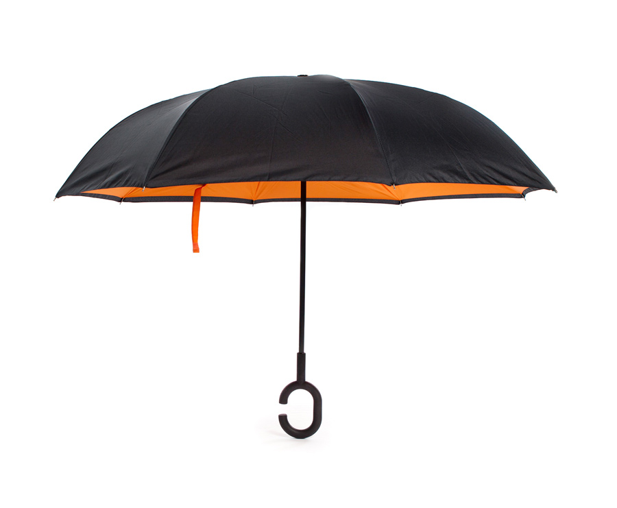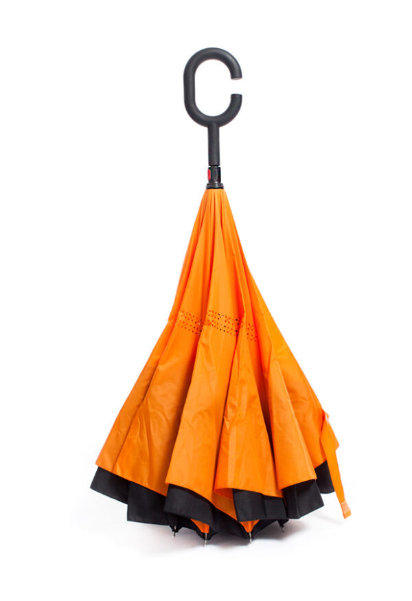 Ομπρέλα Kazbrella αντίστροφης δίπλωσης, λαβή σχήματος C, θήκη, πορτοκαλί