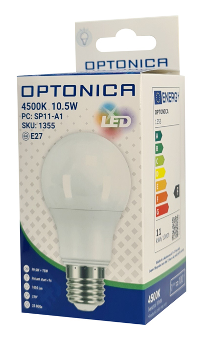 OPTONICA LED λάμπα A60 1355, 10.5W, 4500K, E27, 1055lm