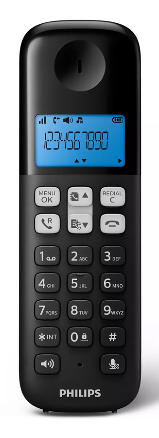 PHILIPS ασύρματο τηλέφωνο D1611B/34, με ελληνικό μενού, μαύρο