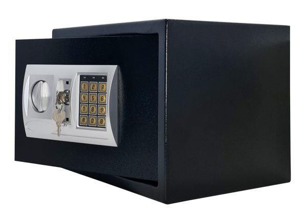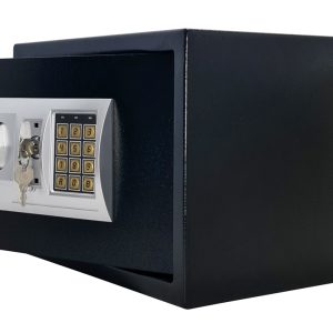 Χρηματοκιβώτιο της Powertech με δύο ενισχυμένους πύρους κλειδώματος, κατασκευασμένο από ατσάλι. Διαθέτει προγραμματιζόμενη ψηφιακή κλειδαριά, 3-8 ψηφίων, που σας επιτρέπει να επιλέγετε τον συνδυασμό που επιθυμείτε και κλειδαριά ασφαλείας με κλειδί που ανοίγει το χρηματοκιβώτιο σε περίπτωση ανάγκης.