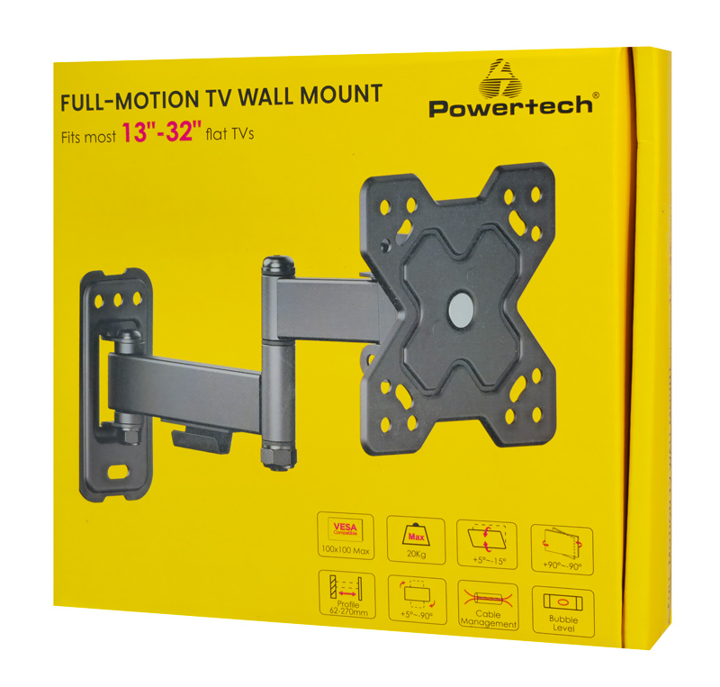 POWERTECH επιτοίχια βάση PT-1278 για τηλεόραση 13-32″, full motion, 20kg