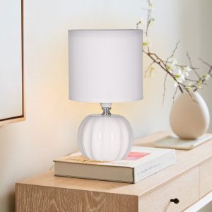 POWERTECH επιτραπέζιο φωτιστικό HLL-0135, E27 κεραμική βάση, λευκό/χρυσό