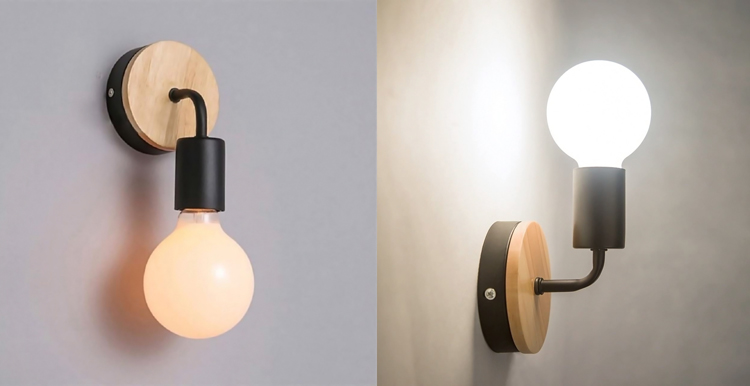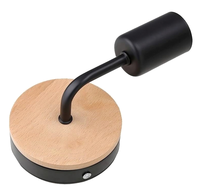 POWERTECH φωτιστικό τοίχου HLL-0017, E27, ξύλο-μέταλλο, μαύρο
