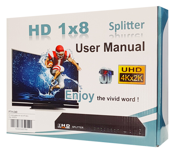Το splitter PTH-049 μπορεί κάνει την συσκευή σας να αποκτήσει 8 θύρες HDMI, ενισχύοντας το σήμα μετάδοσης για μέγιστη απόδοση σύνδεσης έως και 15m. Υποστηρίζει αναλύσεις 480p, 576p, 720p, 1080i, 1080p, 1890 x 2160, 4K x 2K από οποιαδήποτε συσκευή διαθέτει θύρα HDMI. Επίσης υποστηρίζει 4K x 2K HDTV, HDMl 1.4, 3D και σύνδεση με πολυκάναλα μέσα αναπαραγωγής ήχου.