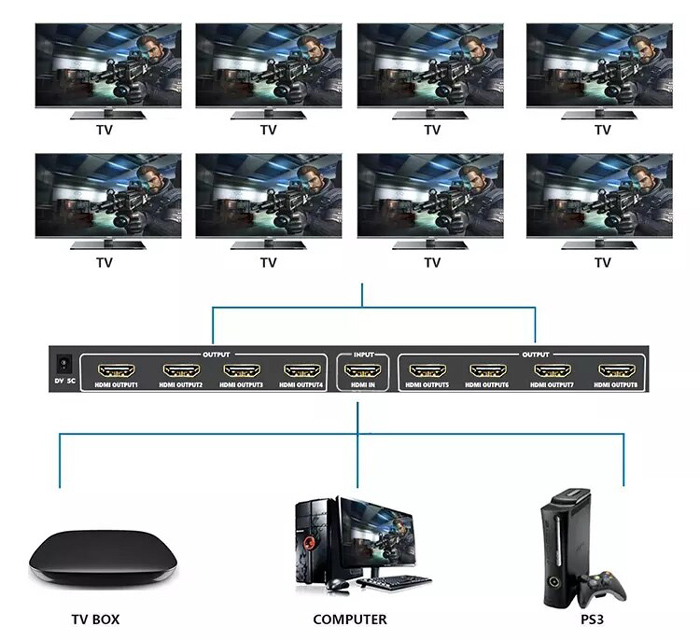 Output Interface: 8x HDMI (Female) 4K, 3840 x 2160 60Hz