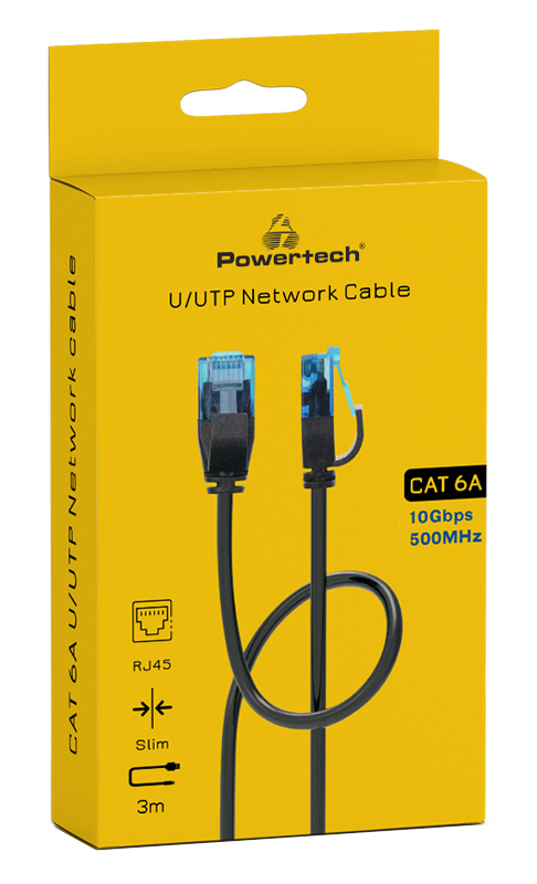 POWERTECH καλώδιο δικτύου PTR-0144 Cat 6a U/UTP, copper, slim, 3m, μαύρο