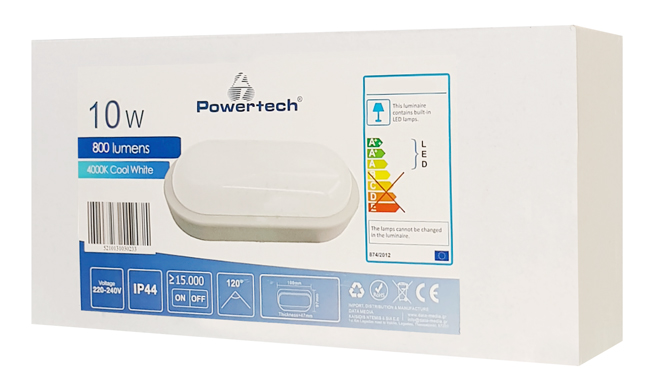 POWERTECH LED φωτιστικό τοίχου EXTL-0004, 10W, 4000k cool white, λευκό