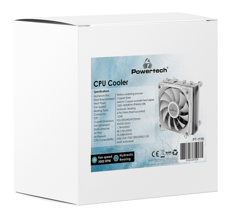 POWERTECH ψύκτρα για CPU PT-1116, 3000rpm, low profile, TDP 155W