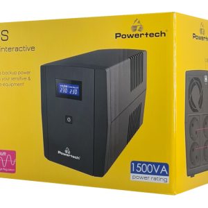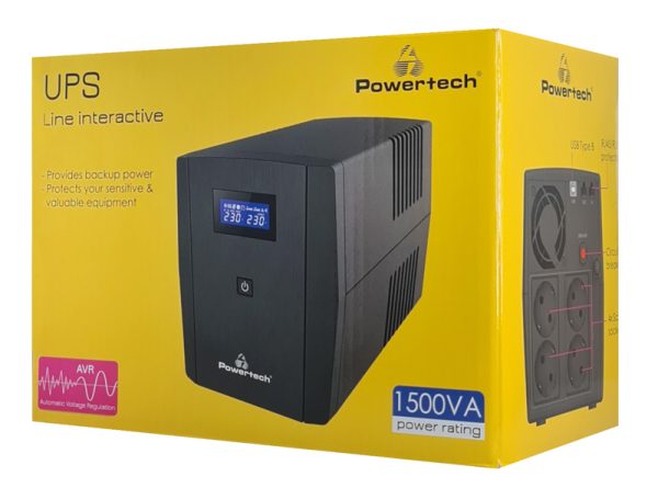 POWERTECH UPS Line Interactive PT-1297 με οθόνη, 1500VA, 900W, 4x Schuko, 2x RJ45/RJ11, USB Type B