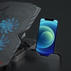 Εξοπλίζεται με LCD οθόνη και πλήκτρα για την ρύθμιση ταχύτητας των ανεμιστήρων και διαθέτει stand για το κινητό σας τηλέφωνο.