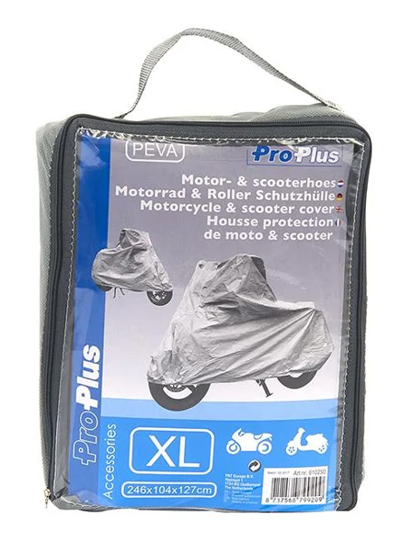 Κουκούλα για μηχανές και σκούτερ από την ProPlus. Χάρη στο ανθεκτικό υλικό κατασκευής της, προστατεύει αποτελεσματικά την μηχανή σας από τον ήλιο, το χιόνι και την βροχή.