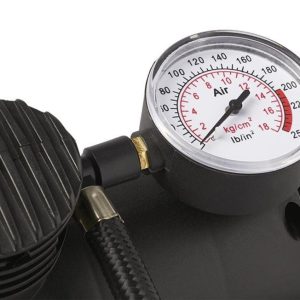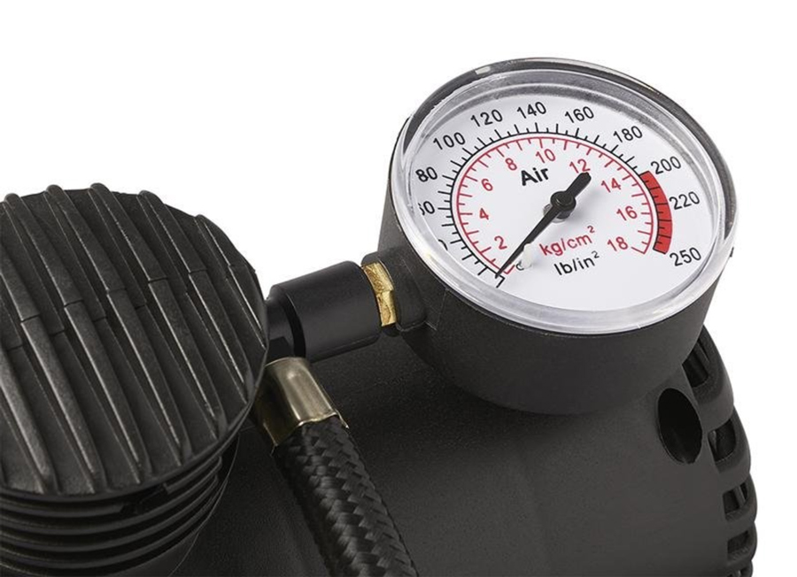 Είναι ικανός να αναπτύξει πιέσεις έως 250PSI/17.2bar και εξοπλίζεται με μανόμετρο που επιτρέπει τον εύκολο έλεγχο της πίεσης των ελαστικών.