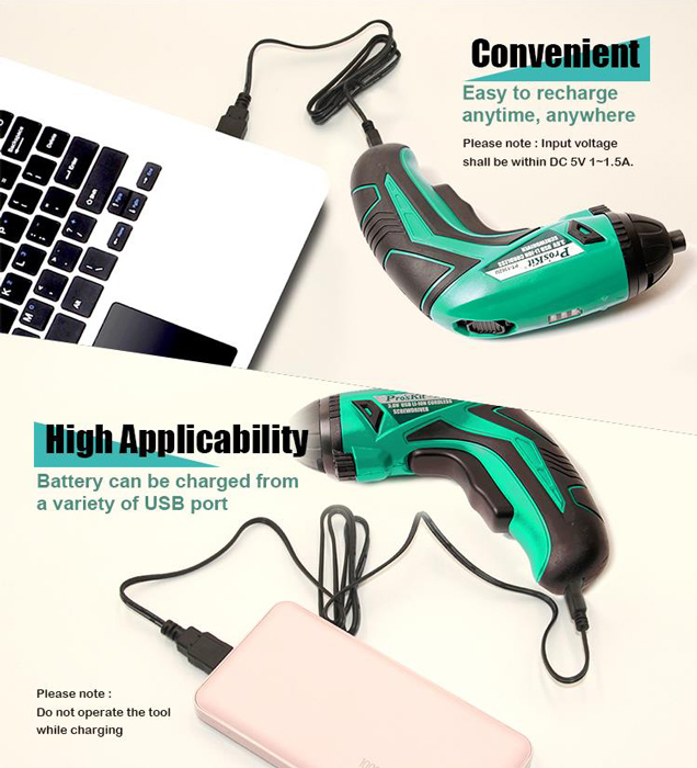 PROSKIT ηλεκτρικό κατσαβίδι PT-1362U με 4 μύτες, LED φακός, 1500mAh