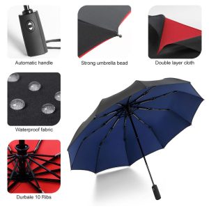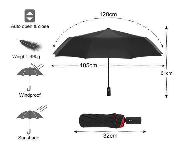 Στιβαρή και πρακτική ομπρέλα, με αυτόματο άνοιγμα και κλείσιμο με το πάτημα ενός κουμπιού. Διαθέτει αντιολισθητική και εργονομικά σχεδιασμένη χειρολαβή που προσφέρει άνεση στο κράτημα. Είναι εξαιρετικά ανθεκτική στον άνεμο, χάρη στην διπλή της επένδυση, δεν γυρίζει ανάποδα με το παραμικρό ίχνος ανέμου και είναι εύκολη στη χρήση της.