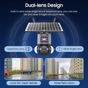 Ασύρματη ηλιακή κάμερα της Sectec εξωτερικού χώρου με διακριτική και μοντέρνα εμφάνιση. Διαθέτει αισθητήρα ανάλυσης 3MP και μπορεί να μεταφέρει εικόνα ανάλυσης 2304x1296p.