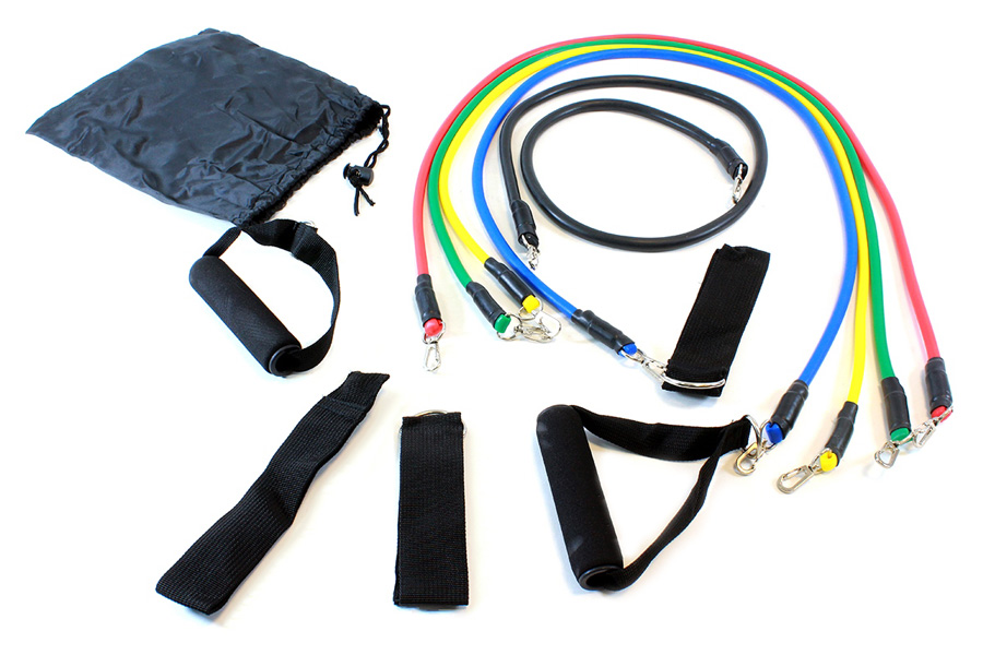 Σετ 5 ελαστικών ελατηρίων αντίστασης, διαφορετικού χρώματος και αντίστασης. Εξοπλίζονται με 2 διαφορετικά σετ ακρών (ιμάντες και χειρολαβές), προσφέροντας μεγαλύτερο εύρος ασκήσεων. Το σετ συνοδεύεται από μια καλαίσθητη και πρακτική θήκη μεταφοράς, ώστε να τα έχετε μαζί σας, οπουδήποτε.
