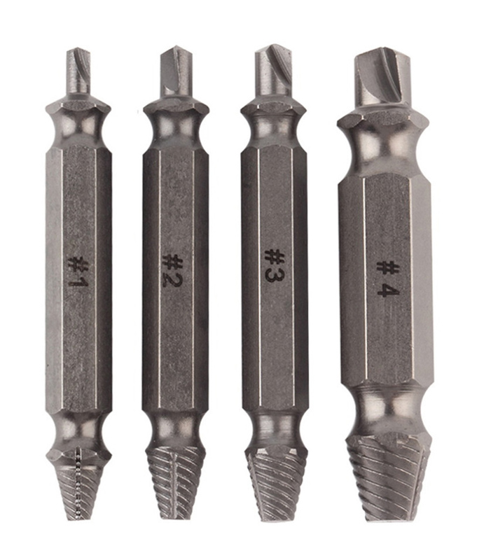 Εξαιρετικό σετ, που αποτελείται από 4 ατσάλινους εξολκείς βιδών σε διαφορετικά μεγέθη. Εφαρμόζουν σε τρυπάνι και σας επιτρέπουν να αφαιρέσετε εύκολα κατεστραμμένες ή κολλημένες βίδες των πιο δημοφιλών μεγεθών.