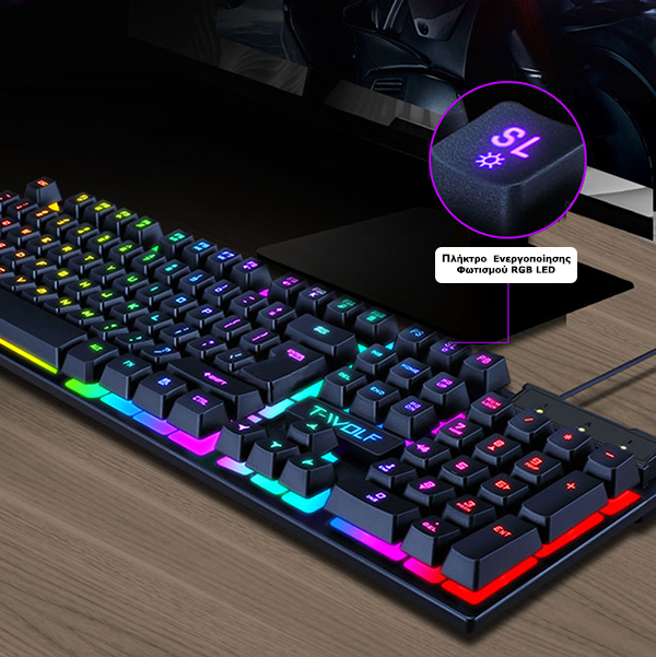 Σετ Gaming Ενσύρματο Πληκτρολόγιο και Ποντίκι USB με RGB LED Φωτισμό T-WOLF TF200