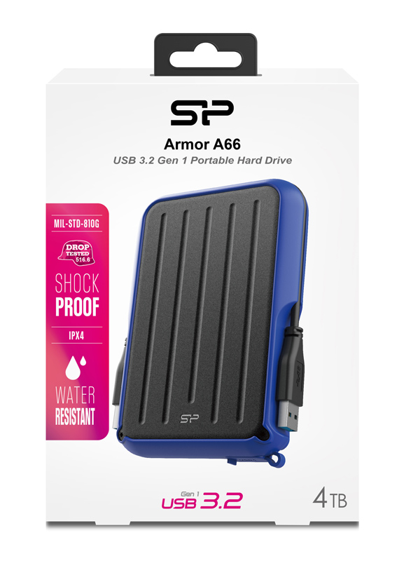 Εξωτερικός σκληρός δίσκος Armor A66 της Silicon Power, εξαιρετικά ανθεκτικός στα χτυπήματα (MIL-STD-810G) και με προστασία IPX4.