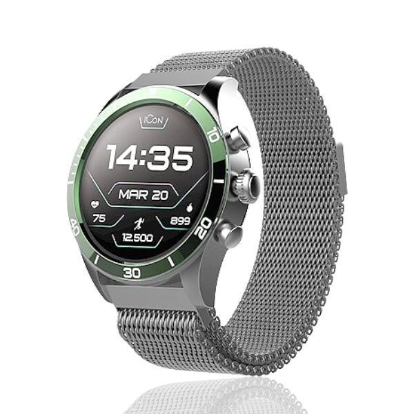 Η συσκευασία του Smartwatch Forever Icon AW-100 42mm (Πράσινο / Γκρι) συνοδεύεται από 2 ιμάντες (1 ασημί ιμάντα βραχιόλι και 1 πράσινο λουράκι σιλικόνης) για να επιλέξετε αυτό που σας ταιριάζει καθώς και να το αλλάζετε κάθε φορά αναλόγως την περίσταση ή την διάθεση σας!