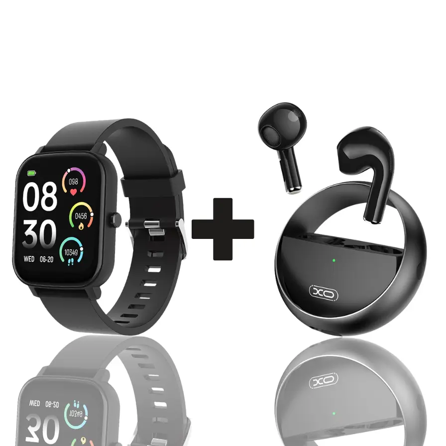Smartwatch με Ελληνικό μενού, Κλήσεις, Μηνύματα, Παλμογράφο, Οξυγόνο αίματος, Bluetooth MXSW Μαύρο και Δώρο Ακουστικά Bluetooth XO X31 Μαύρα