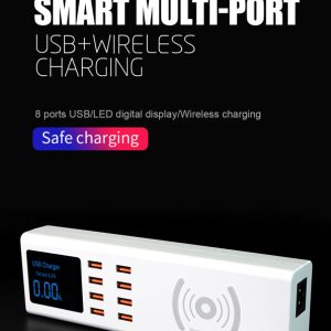 Σταθμός φόρτισης με 8x θύρες USB, για ταυτόχρονη φόρτιση έως 8 συσκευών, με μέγιστη απόδοση 8A. Διαθέτει οθόνη για την ένδειξη της απόδοσης φόρτισης και υποστηρίζει ασύρματη φόρτιση με απόδοση έως 10W.