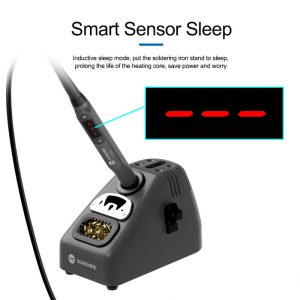Σταθμός κόλλησης της Sunshine με υψηλή ισχύ 110W. Ενσωματώνει βάση για κολλητήρι και για σύρμα χαλκού, αλλά και αποθηκευτικό χώρο για τοποθέτηση των μυτών κολλητηρίου. Επιπλέον, διαθέτει εύκολο σύστημα αλλαγής μύτης, που επιτρέπει την αλλαγή της ακόμη και όταν η μύτη είναι ζεστή.