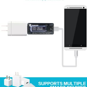 USB tester για τον έλεγχο της φόρτισης συσκευών που φορτίζουν μέσω θύρας USB. Η είσοδος USB συνδέεται με φορτιστή τοίχου ή αυτοκινήτου και η έξοδος USB με το καλώδιο φόρτισης. Διαθέτει ευανάγνωστη οθόνη που εμφανίζει σε πραγματικό χρόνο τα Voltage και Ampere εξόδου, τον χρόνο φόρτισης και την χωρητικότητα της μπαταρίας.