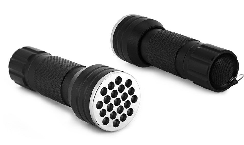 Φακός UV από την Sunshine, κατάλληλος για το στέγνωμα κόλλας UV. Είναι μικρός σε μέγεθος, με μεταλλικό σώμα, και η τροφοδοσία του γίνεται με 3x AAA μπαταρίες (δεν συμπεριλαμβάνονται).
