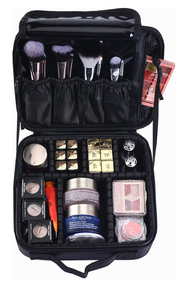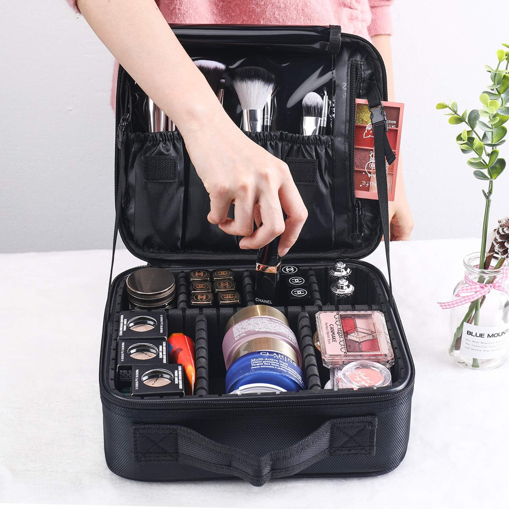 Τσάντα καλλυντικών, ιδανική για ταξίδια και εκδρομές. Εξοπλίζεται με πολλαπλές εσωτερικές θέσεις για την τοποθέτηση προϊόντων περιποίησης και καλλυντικών, ενώ, προσφέρει την δυνατότητα αναδιάταξης των εσωτερικών διαμερισμάτων ανάλογα με τις ανάγκες σας.