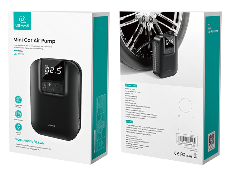 USAMS mini συμπιεστής αέρος αυτοκινήτου US-ZB215, μαύρος