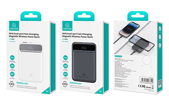 USAMS power bank US-CD214, 2x έξοδοι, wireless, 10000mAh, 20W, λευκό USAMS power bank US-CD214, 2x ...