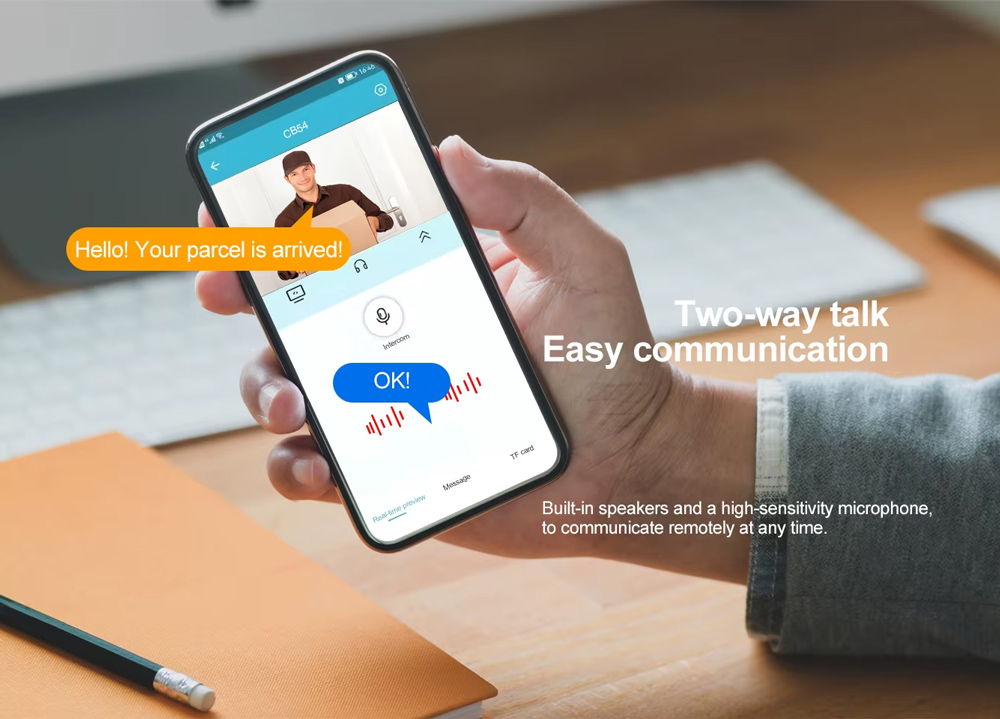 Μπορεί να ανιχνεύσει κινήσεις, στέλνοντας ειδοποιήσεις στο smartphone σας κάθε φορά που ανιχνεύεται κίνηση αλλά και εξοπλίζεται με υψηλής ποιότητας μικρόφωνο που επιτρέπει την αμφίδρομη μεταφορά φωνής και ήχου.