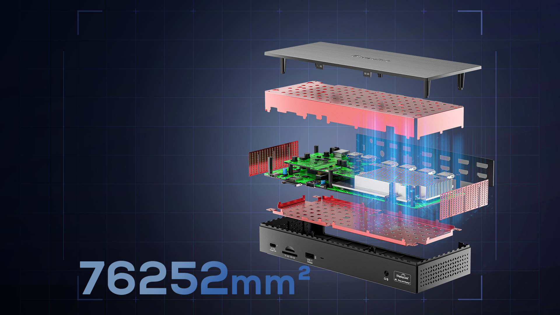 1 x USB-C (PD 30W), 3 x USB 3.0 (5Gb/s), 1 x USB 3.1 (10Gb/s), 1 x Type-C (κεντρικός υπολογιστής; PD 100W), 4 x DisplayPort & 4 x HDMI, RJ45 2.5G Ethernet, θύρα ήχου/μικροφώνου “δύο σε ένα” 3,5 mm, υποδοχή κάρτας SD/TF, Τροφοδοτικό DC 20V/9A 180 Watt, Κουμπί τροφοδοσίας